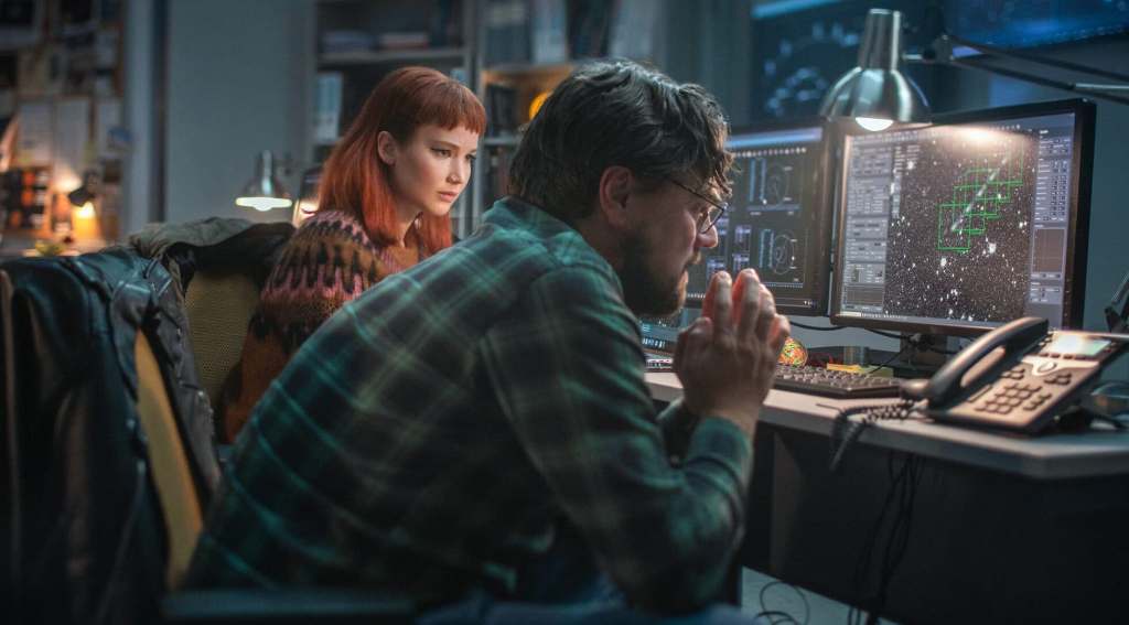 Scathing and pointed, McKay’s writing doesn’t pull any punches in this film, but perhaps the distinct lack of subtlety can feel slightly hamfisted from time to time, as many of the characters are relatively cartoonish. While I actually think that Bo Burnham’s “That Funny Feeling” from his special titled INSIDE sum up these existential anxieties more elegantly, I do think that McKay’s satire and commentary mostly hits and works. Tonally, it is an interesting beast that mostly worked quite well for me — though not quite the tonal tightrope act that some of his previous films were — but your mileage may vary as McKay’s satire won’t be for everyone this time either. He’s no Iannucci or Stanley Kubrick, but he is angry. McKay almost definitely should’ve interrogated the problems that he’s satirizing a little bit deeper in the film, but he does get his message across all the same. His angry satire delivering both depressing sighs of exasperation and hard laughs (due to the absurdity of it all) hits hard. McKay’s comedy is angry. He’s angry at world leaders who are asleep at the wheel, he’s angry at his fellow civilians for not understanding the gravity of the very real danger of climate change, he’s frustrated by bureaucracy and systems and, more than anything else, he’s angry that people keep on ignoringg scientists’ pleas.