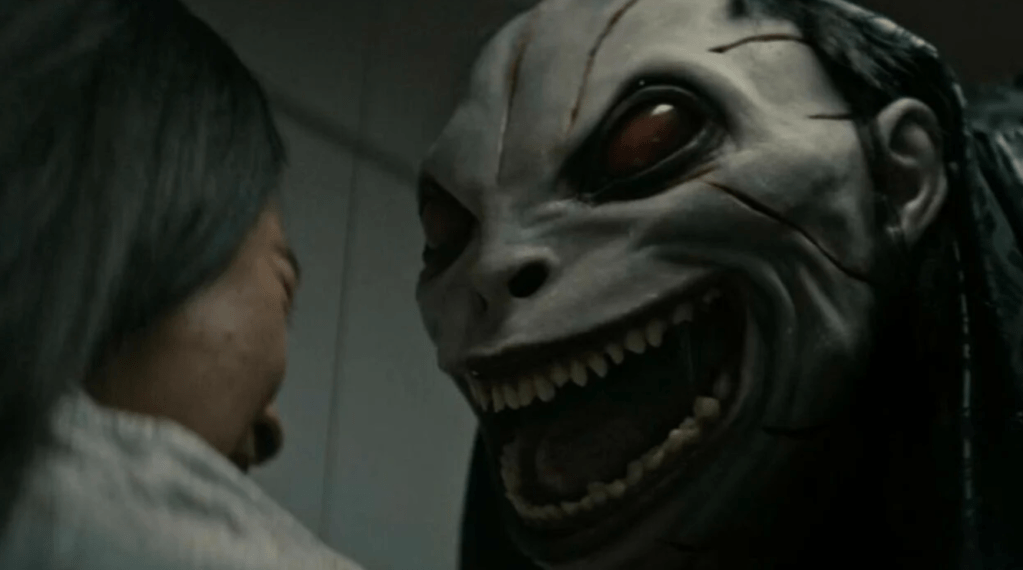 When a horror film has a monster, or a creature, at the center of it, then the design of that monster has to work for the film to actually sit right. That’s just one of the problems here. Not only is the name of the film and the creature a really strange choice, but the monster itself has this really unconvincing look that is sometimes unintentionally funny. It’s lanky and barely has any distinctive details below its white head, red eyes, and a broad smile. It felt to me like they were going for a mixture of Bughuul from Sinister and Slenderman, but the combination doesn’t work.