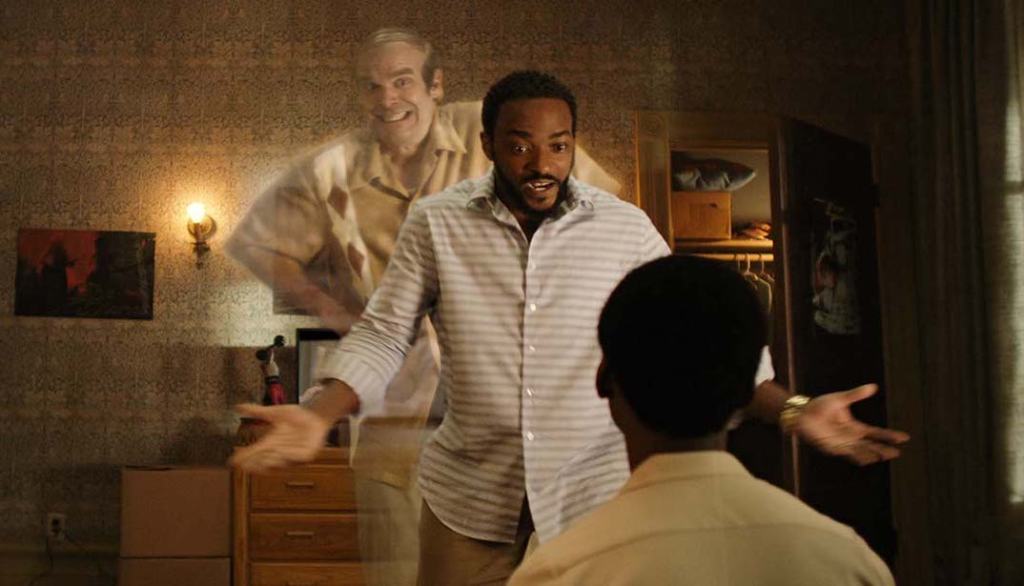 Based on a short story written by Geoff Manaugh, We Have A Ghost follows the Presley family as they move into an abandoned fixer-upper that they don’t know is haunted. Kevin (played by Jahi Winston) is the first to discover the ghost, ‘Ernest’ (played by David Harbour), whose attempts to scare him are mostly amusing to Kevin. Eventually, Kevin starts to befriend the ghost, who is unable to talk, and he becomes interested in finding out who Ernest really was. When the rest of the family finds out about Ernest things change. Much to Kevin’s disappointment, Kevin’s father, Frank (played by Anthony Mackie), wants to upload videos of the ghost to the internet and use them to make money and gain fame. Soon the family of four become small-time celebrities as their videos go viral and interest both weirdos, online influencers, reality TV mediums, and the government, the latter of which want to capture the friendly ghostly apparition.