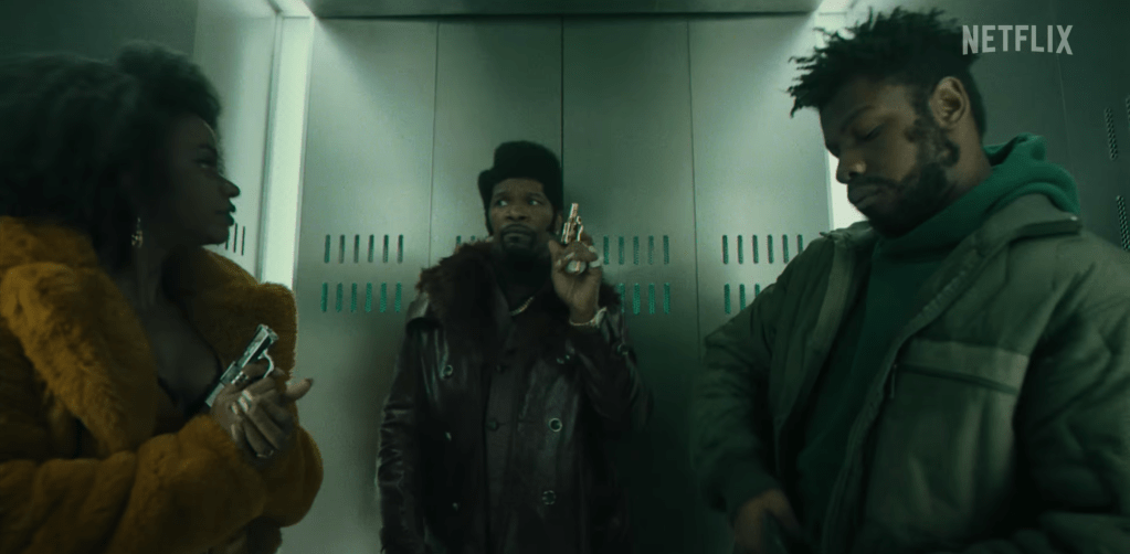 Juel Taylor’s They Cloned Tyrone follows a drug dealer from the neighborhood known as ‘Glen,’ which has secrets lurking beneath it. This drug dealer, named Fontaine (played by John Boyega), is one day gunned down and killed by another drug dealer, and yet he wakes up the next morning like nothing ever happened. This startles Slick (played by Jamie Foxx), a pimp, who witnessed Fontaine’s death. Together, Slick, Fontaine, and Yo-Yo (played by Teyonah Parris), a sex worker who loves Nancy Drew, decide to investigate what exactly is going on. Their investigation eventually leads them to an underground facility in which they find mysterious powder and a corpse that is identical to Fontaine.