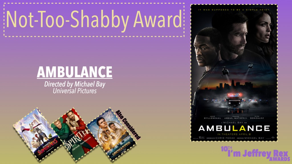 - Not-Too-Shabby Award — 2022 — Michael Bay’s Ambulance.