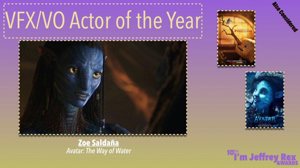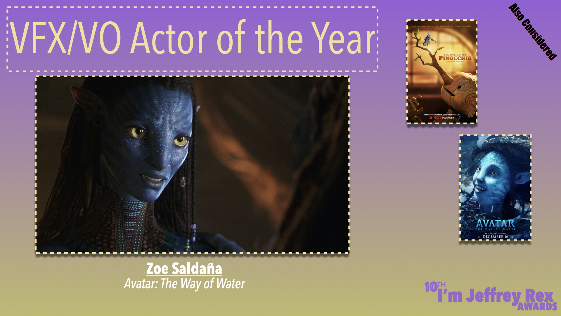 - Visual Effects or Voice Actor of the Year — 2022 — Zoe Saldana for Avatar: The Way of Water.