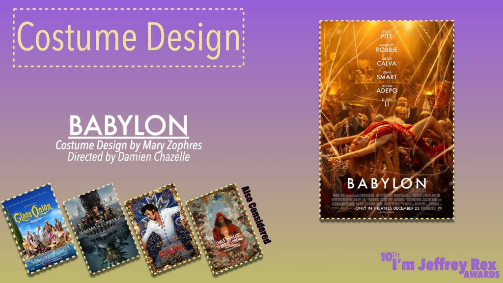 - Best Costume Design — 2022 — Mary Zophres for Babylon.