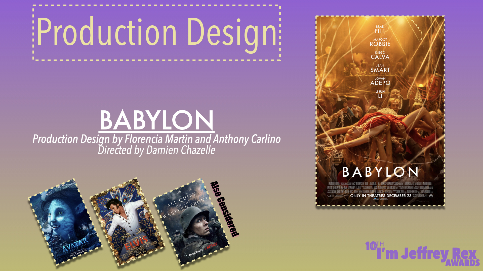 Two in a row for Babylon, and it just had to be this way. The stellar production design for period-Hollywood likely took quite a lot of effort, and the hard work paid off — it’s astoundingly good.