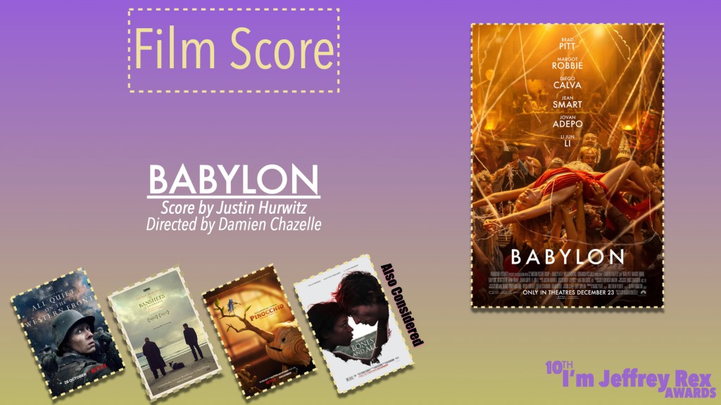 - Best Film Score — 2022 — Justin Hurwitz for Babylon.