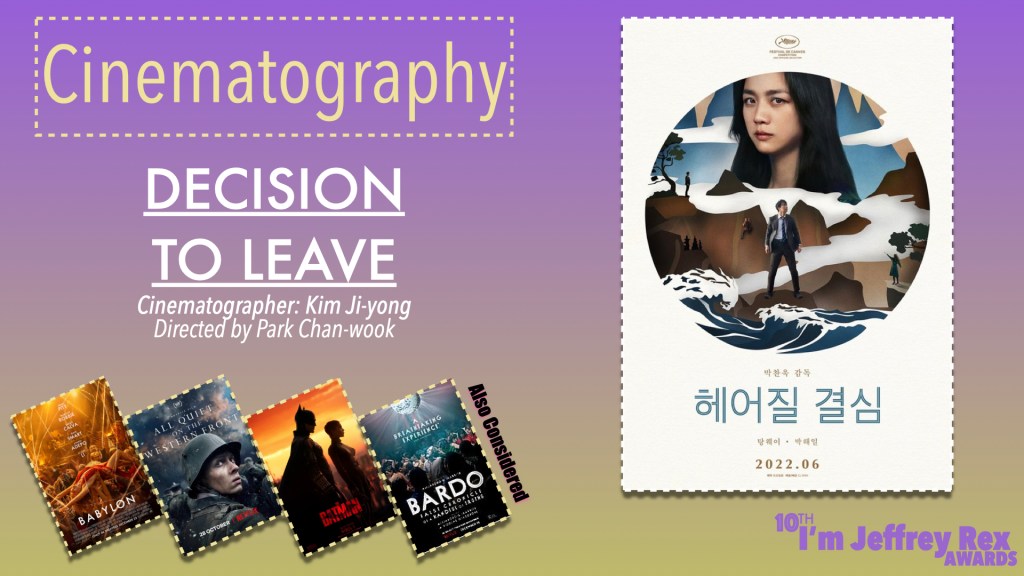 - Best Cinematography – 2022 — Kim Ji-yong for Decision to Leave.
