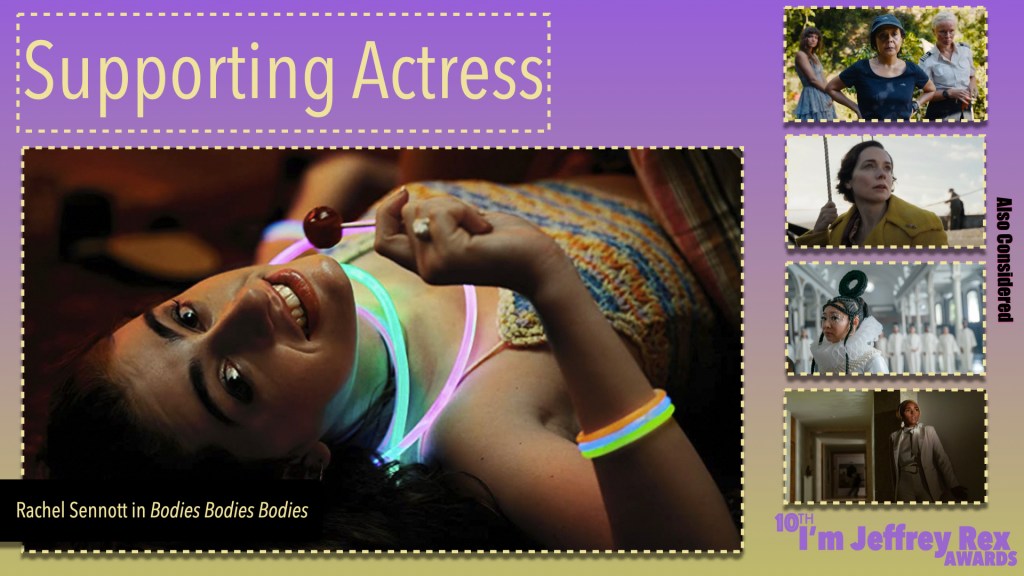 - Best Supporting Actress — 2022 — Rachel Sennott for Bodies Bodies Bodies.