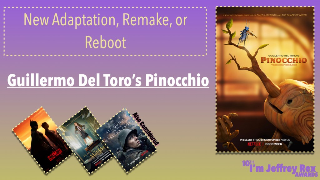 - Best New Adaptation, Remake, or Reboot — 2022 — Guillermo Del Toro’s Pinocchio.