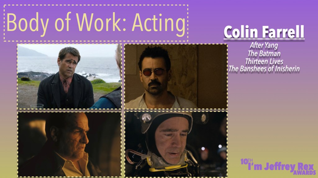- Best Body of Work: Acting — 2022 — Colin Farrell.