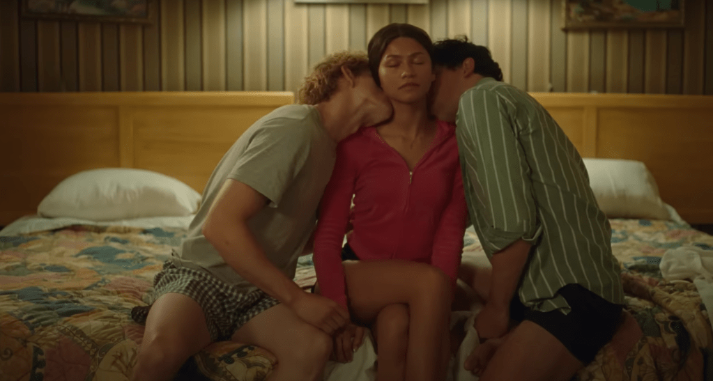 Presented non-linearly, Luca Guadagnino’s Challengers follows tennis players and best friends Art Donaldson (played by Mike Faist) and Patrick Zweig (played by Josh O’Connor), as their shared obsession with the sport and competition, leads them to both be infatuated with Tashi Duncan (played by Zendaya), a female tennis player with loads of potential and a clear idea of what her life must be like to achieve the success she so desires. When the three eventually meet, they start to flirt and there is a connection between all three of them which they may or may not have acted upon thereafter. When, years later, Art and Patrick — now estranged from one another and on different career paths — face off in a so-called challenger tournament, old animosity and chemistry resurface and secrets are slowly revealed. Meanwhile, Tashi is caught in the middle, as she is both frustrated by the lack of ambition of the person she hitched her wagon to and tempted by an old fling.