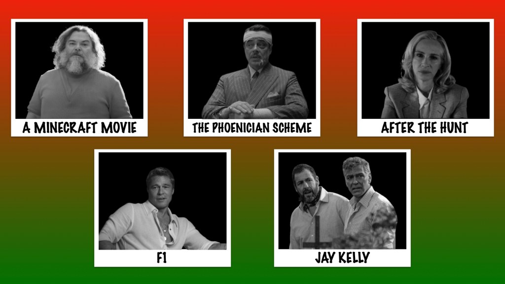 Bottom Row (L-R): F1 (Warner Bros. Pictures / Apple TV+); Jay Kelly (Netflix).