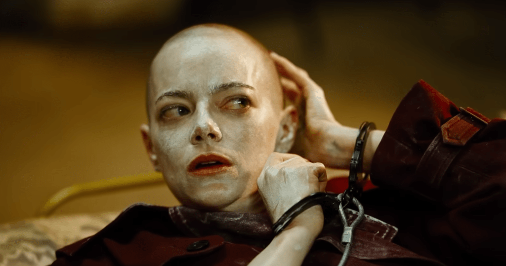 Yorgos Lanthimos’ Bugonia follows Teddy Gatz (played by Jesse Plemons), a conspiracy theorist, who enlists the help of his cousin, Don (played by Aidan Delbis), as he plans to abduct Michelle Fuller (played by Emma Stone), who is a powerful CEO of a pharmaceutical company. Teddy is adamant that Michelle is actually an alien hiding in plain sight and in a position of power, and that her species ultimately hopes to destroy our planet. As you might’ve guessed, the central question becomes if there is actually something to Teddy’s beliefs, or if it’s all in his head.