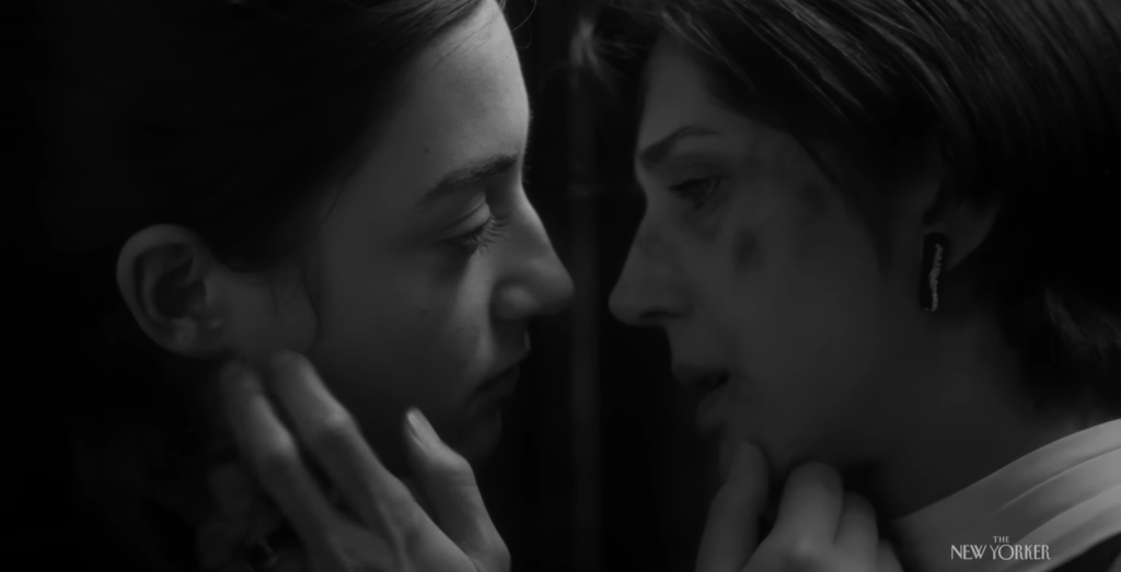 This is a dystopian and deliberately absurd live-action short film about a world where kissing is strictly forbidden, where you pay for items by being slapped in the face, where you use garlic chewing gum to avoid having anyone throw themselves at you, and where toothpaste is an illegal product sold as if it were drugs. It is presented with a straight face, in black-and-white, is in French, is divided into chapters, and is arguably the most unique and fascinating live action short nominated this year. Despite being on the long side, I really enjoyed this one. The acting, the filmmaking, and the use of absurdist element to speak to a real world issues (like being in an oppressive surveillance state that punishes displays of affection, freedom of expression, and any form of identity being on display) all work really well.