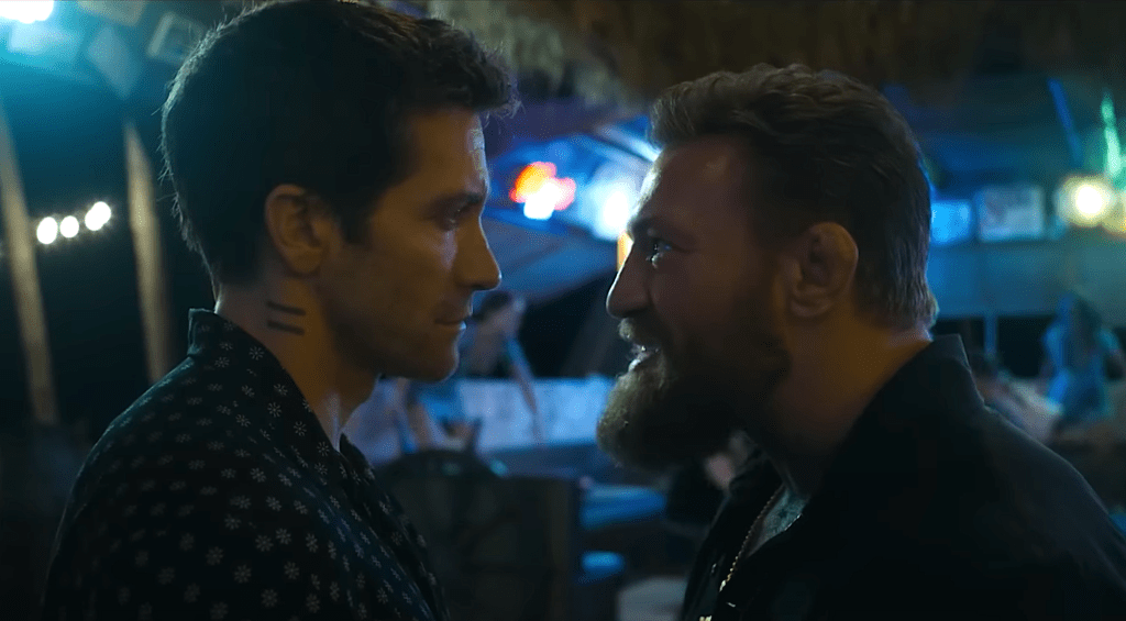 (L-R) Jake Gyllenhaal and Conor McGregor in ROAD HOUSE (2024) — PHOTO: Amazon MGM Studios / Prime Video (Still image from the trailer).