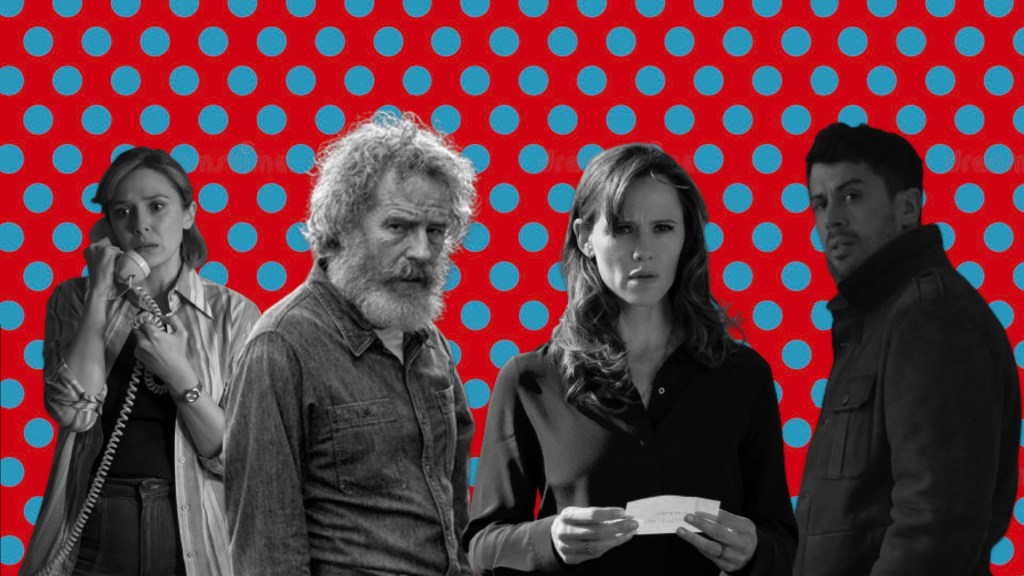 (L-R) Elizabeth Olsen in HBO Max’s LOVE AND DEATH; Bryan Cranston in Showtime’s YOUR HONOR; Jennifer Garner in Apple TV+’s THE LAST THING HE TOLD ME; Toby Kebbell in Apple TV+’s SERVANT.