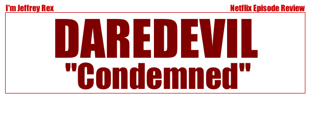 Marvel’s Daredevil is a new Netflix show from the same universe as the Avengers films. Expect spoilers for every review this season, though I’m going to try to limit spoilery details. “Condemned” is the sixth episode of the first season, and this one definitely felt like a classic mid-season finale.